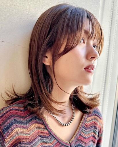 毛先に揺れ感や動きを強調することでさり気なくフェイスラインをぼかすことができますし、ナチュラルにツヤ感を纏えば自然とこなれた印象に。また、額を程良く覗かせることで顔立ちやメイクの印象を強調できるので大人感もしっかりキープできるでしょう。