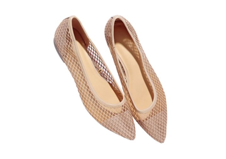 透ける肌感が女らしさを底上げ。甲をしっかり覆うデザインだから、歩きやすさも◎。メッシュサンダル¥16,500/ル・ベルニ(キャセリーニ)