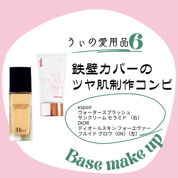 とにかく乾燥肌でシミとほくろが目立つ私。カバーし過ぎてもシワになってヨレやすい。そんな私がたどり着いた結論がこの組み合わせ。espoirの日焼け止めはキシまず潤う付け心地。DIORのファンデーションはカバー力はありつつも、重さはなく、伸びも良いので少量で全顔行けちゃう!!プチプラクッションファンデより逆にコスパ良いまである!!