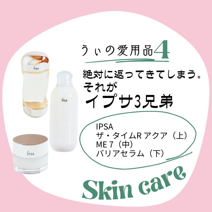 何度もスキンケアをケチろうとプチプラに置き換えてみたけれど、戻ってきてしまうこの子たち。肌の潤いが断然変わる。サラッとクセなく水分を入れ込められる化粧水に、肌診断で自分に合うものを選べる化粧液。さらに最後のセラムは宣伝文句通り翌朝までしっとりを保ってくれます!!もう何本リピしたか覚えていない。私の譲れないスキンケアです。
