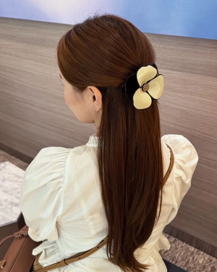 ベージュ×黒の大人っぽバイカラーヘアクリップ