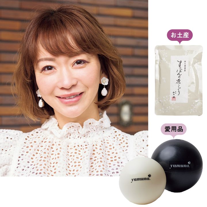 むくみや疲れの解消にはヤムナボールを。顔や体に沈み込ませ、骨格から歪みを整えるのが日課。和久傳のすっぽんの煮こごりは、まとめ買いして女子会の手土産に。食べた翌日はお肌ぷるん。