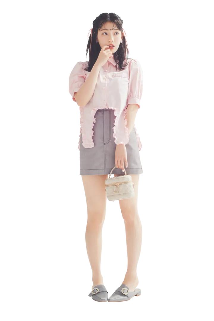 タイトシルエットのワンピなら甘~いフリルブラウスをONしてミニスカ風に味変♡