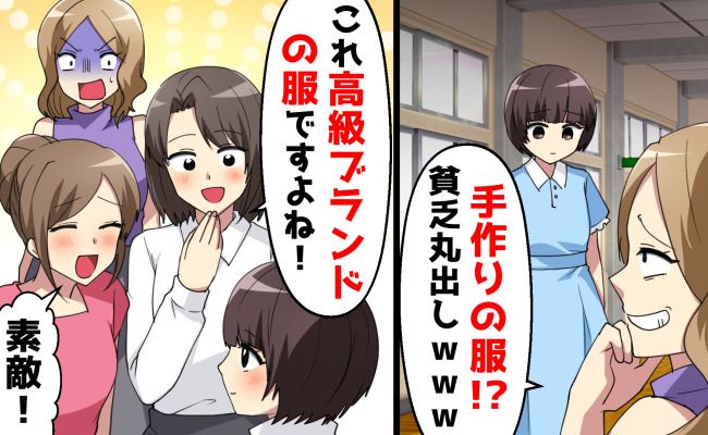 あら、その服地味ね。どこで買ったの?」とA子。「おばあちゃんが作ってくれたの!」と娘が答えると、「今どき手作りの服!? 貧乏丸出し!」と悪口を言っているではありませんか!