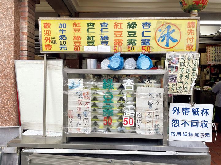 台北市大同區迪化街一段21號 0916−838−987 9:30~17:00 月休 杏仁露は50元。小豆入りまたは緑豆入りは60元。