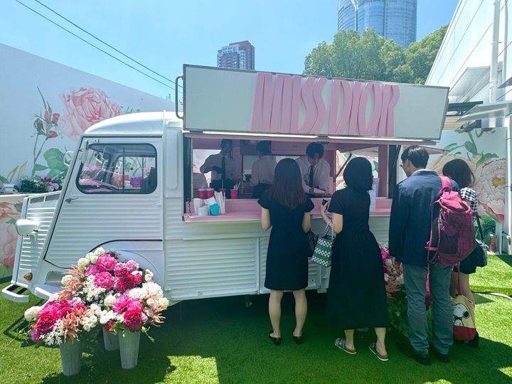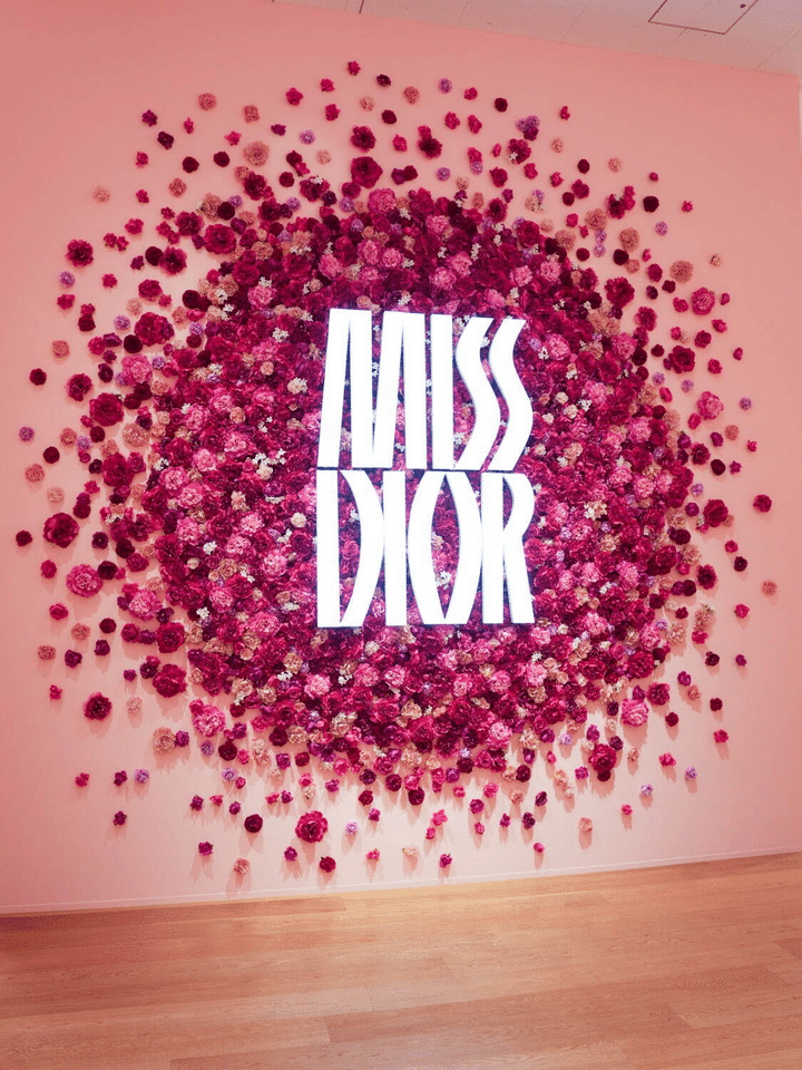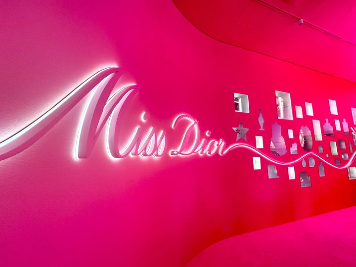スタッフの方に案内されて足を踏み入れると真っ先に現れるのは、一面ピンクの世界に大きな“Miss Dior”のロゴ