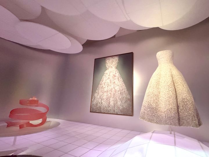 中央にあるのは、1949年に発表されたクチュールドレスのレプリカ。