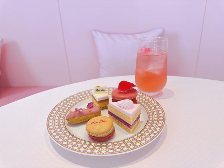 カフェの中もパステルピンク一色でディオールの世界観で優雅なティータイムを過ごすことができます。
