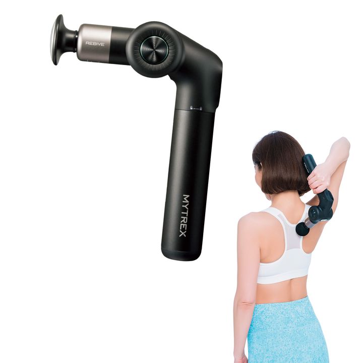 伸縮性のあるハンドルと角度調整できるヘッド部分で、肩や背中も楽々マッサージ。パワフルな振動でリラックスタイムに気持ちよく筋膜をリリース。MYTREX REBI VE EX PRO ¥19,800(創通メディカル)