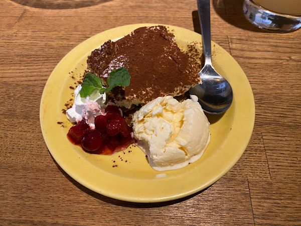 最後にデザートです。 デザートは自家製ティラミスとバニラアイスにしてくれました!自家製ティラミスが濃厚でおいしいです。ハーゲンダッツと迷いましたが自家製ティラミスにして正解。