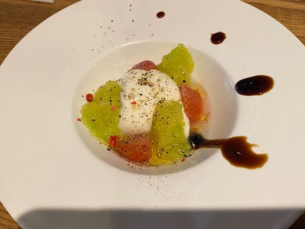 ブッラータチーズと季節のフルーツ グレープフルーツがさっぱりしているので箸休めになります。
