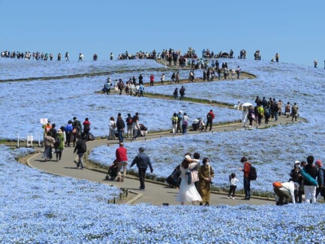 ひたちなか市は、茨城県のほぼ中央部で、水戸市の東に接しています。市内には、国営ひたち海浜公園や阿字ヶ浦海岸など、人気の観光スポットに恵まれています。国営ひたち海浜公園は例年ゴールデンウィーク前後には、約530万本の青いネモフィラが、みはらしの丘を覆いつくし、フォトジェニックな光景を見せてくれます。