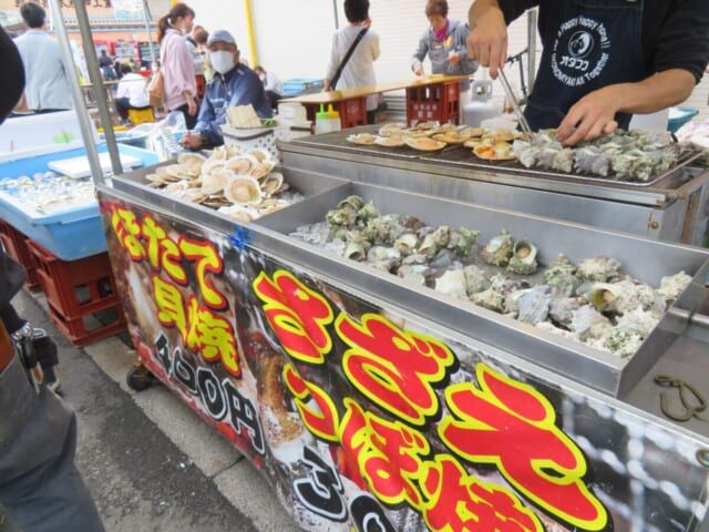 サザエ、ツブ貝、ホタテ、イカなど、水揚げされたばかりの新鮮な魚介類を串焼きや、つぼ焼きで味わうことができます。海岸線を吹き抜ける潮風を感じながらの海鮮グルメの食べ歩きは格別です。
