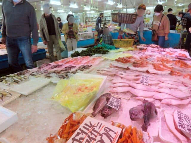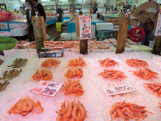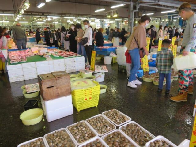 広々とした市場には、ヒラメ、カレイ、マグロ、カツオなどの魚類をはじめ、貝類やエビ、イカなどが、ずらりと並んでいます。スーパーなどでは見かけない魚も多く、豊富な海の恵みを実感することができます。どの魚介類も抜群の鮮度なので、刺身をはじめどのような料理にでも利用が可能です。お土産にすれば喜ばれること間違いなしです。自宅での食卓に並べれば、食事は豊かなものとなります。