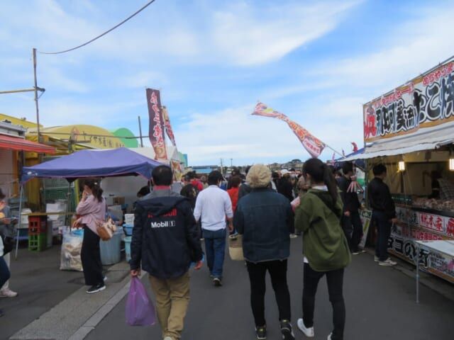 市場のメインストリートは太平洋に面して約300mつながり、東の正面には太平洋の大海原が広がります。海岸には那珂湊漁港が整備され、数多くの漁船が停泊しているのです。