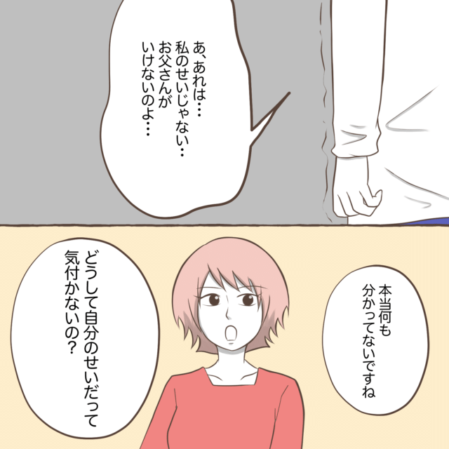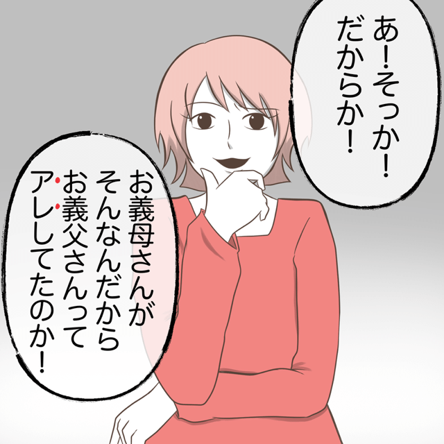義母の行動に何かがキレたわたすさんは、暴言が止まらず・・「見せる相手もいないのに着飾ってどうするの?」「いい加減子離れしたら?たいくんがニートなのはお義母さんのせい!」と言った後、「あ!だからか!お義母さんがそんなんだからお義父さんはアレしてたのか!」と言い出して・・