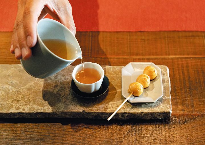 京都の美術大学留学時に日本茶の文化に触れ、改めて台湾茶に興味を持ったというアーサーさんの茶芸サロン。『孵珈琲洋館』と同じビルの4階にあり、中国・宜興の茶壺や徳化の白磁の茶杯が、迪化街の歴史ある老建築に映える。メニューは、40種類ほどの茶葉の中からお客の希望に合わせて店主が選ぶ「OMAKASE(おまかせ)」スタイル。またティーカクテルもあり、アンティークのバカラなど美しいグラスで味わうことも。完全予約制の密やかな雰囲気もまた魅力だ。上・「OMAKASE 季」は茶葉1種(4煎)に自家製みたらし団子付きで700元。この日は甘露な熟成感が花開く2010年阿里山佛手茶を。