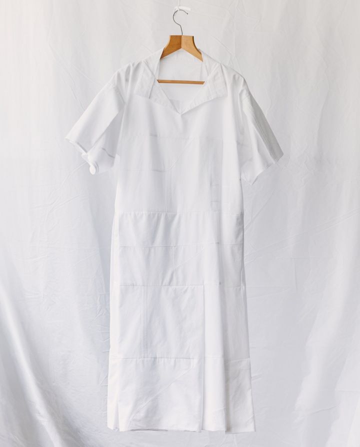 イングリッシュによると、その製作過程では予想外の発見もあったという。「衣服を解体していたとき、(生地を仕立ててから染める)後染めがされていたことがわかりました。その衣服がどういったものだったかを示す、美しい線が残っていたのです。そこで私たちはこの線をプリントのような装飾として、プロジェクトの中心的な要素にすることを決めました」