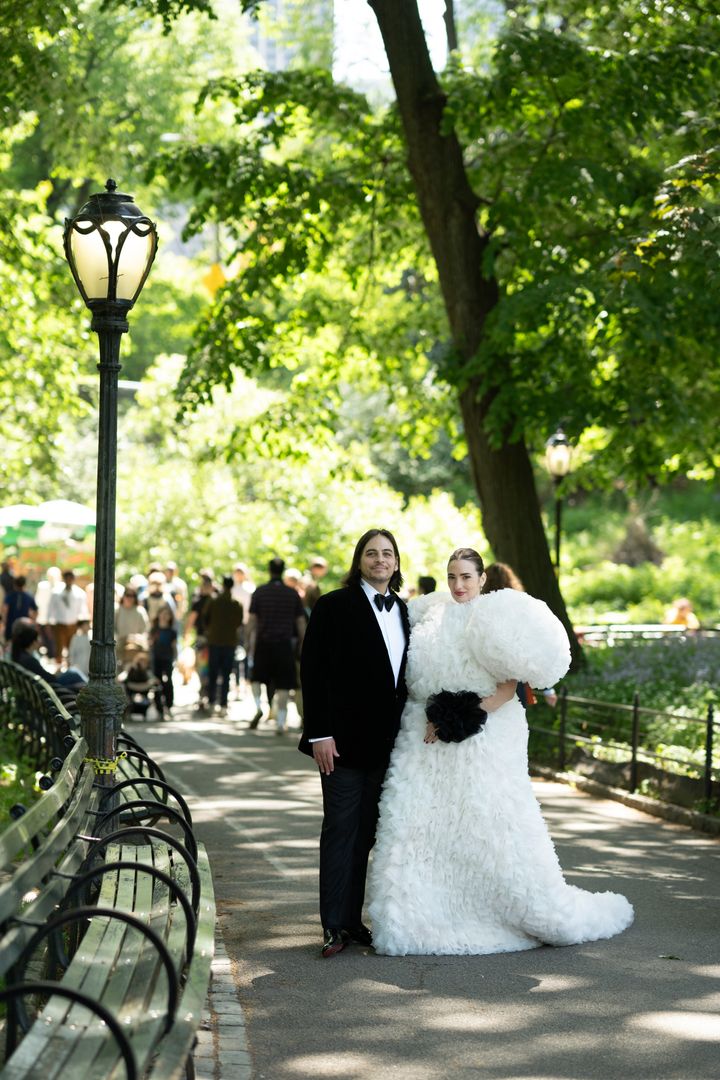 セレモニー後、2人はウエディングフォト撮影のために、式会場の向かいにあるセントラル・パークへと向かった。「セントラル・パークには毎日行っているんですけれど、この派手で華やかな衣装を着て行くのは本当に楽しかったです。(通りすがりの人も)みんな携帯を出して、私たちの写真を撮っていました。泣いている小さな男の子がいたんですけれど、このドレスを見た瞬間、泣き止んだんです。人を笑顔にすること。それが一番ですよね!」
