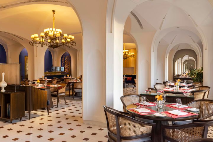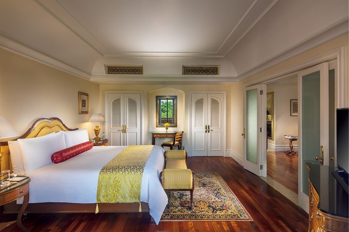客室は英国のカントリーハウスを模範にした優雅な設えで、ラジャスタンの伝統文化を織り込んだエレガントなインテリアで満たされている。19世紀のマハラジャの黄金時代と同時期にシンガポールで創業したラッフルズのアイコン「ロングバー」も再現。かの有名なカクテルをインド風にアレンジしたウダイプールスリングは必飲だ。