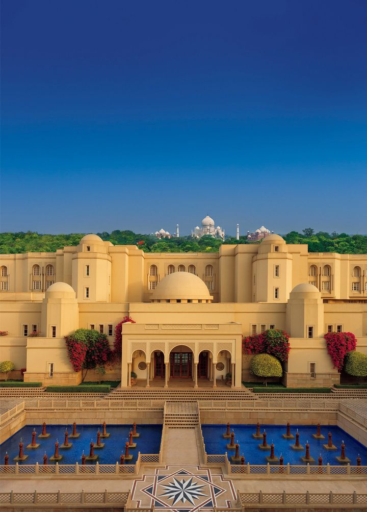 タージ・マハルの東門からわずか600mの場所に立ち、端正に整えられた庭園、絢爛豪華な噴水、列柱に支えられた壮麗なパビリオンを持つホテル。日の出と日没に最高に美しい姿を見せるタージ・マハルを、何にも遮られることなく、全客室から眺めることができる。
