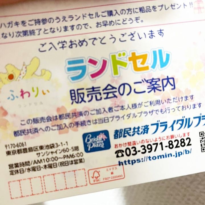そろそろ次男もランドセル決めないとな〜って思っていたところ、こんなハガキが!