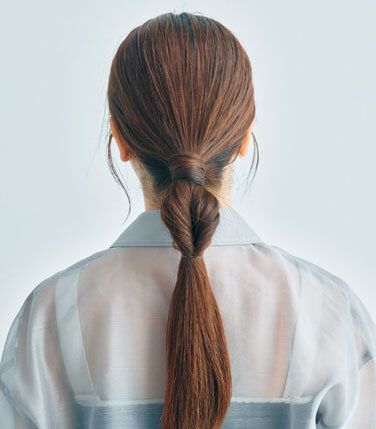 コイルアップでつくる毛先まで広がらないタイトポニー