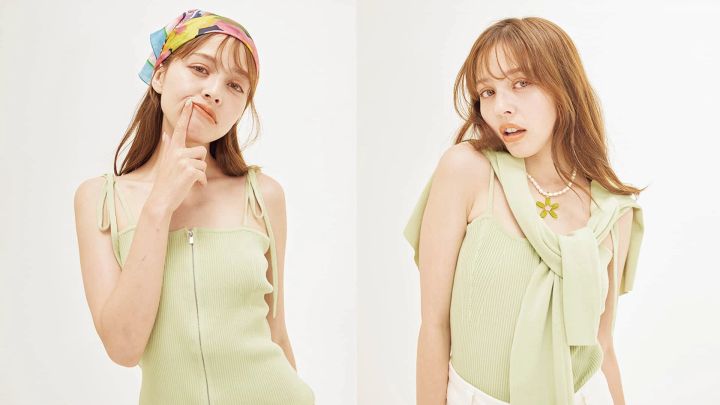 あえてキャミを上に着る斬新な重ね着はいかが?