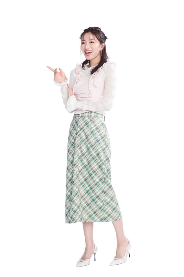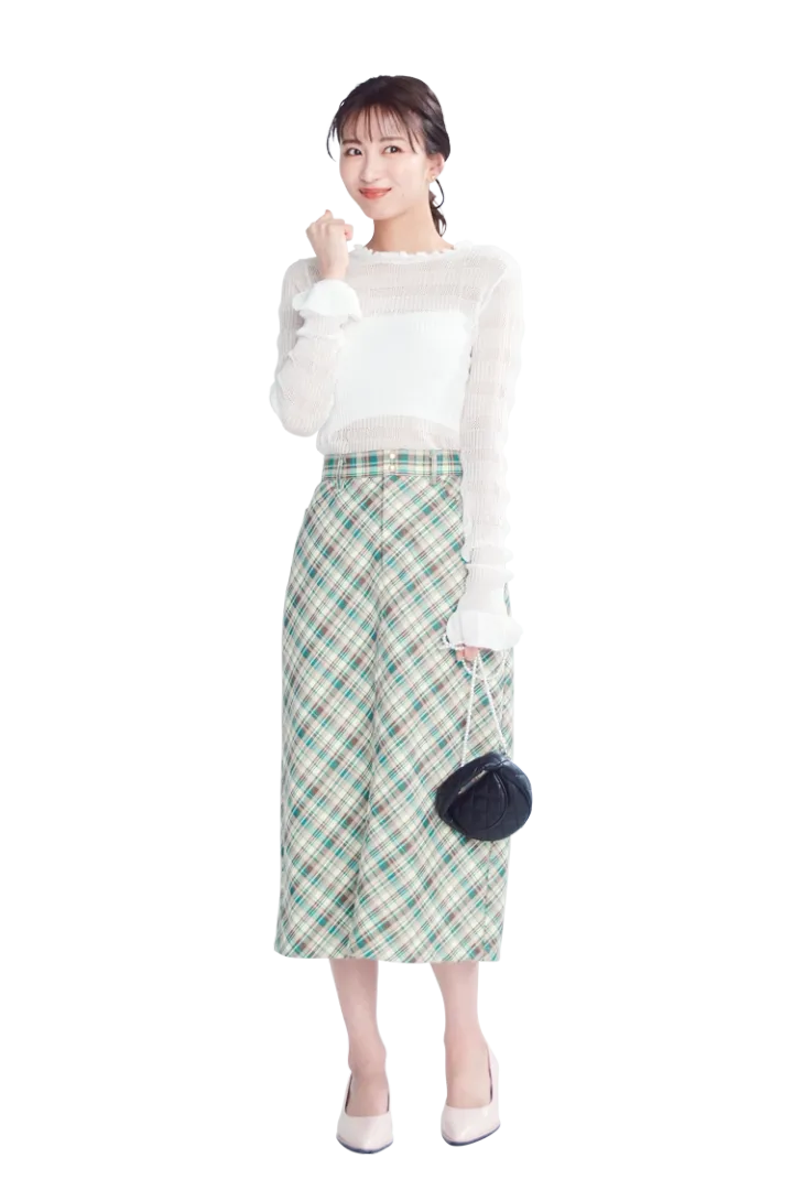 シンプルな着こなしで上品に。チェック柄のスカートで華やかさも添える♡