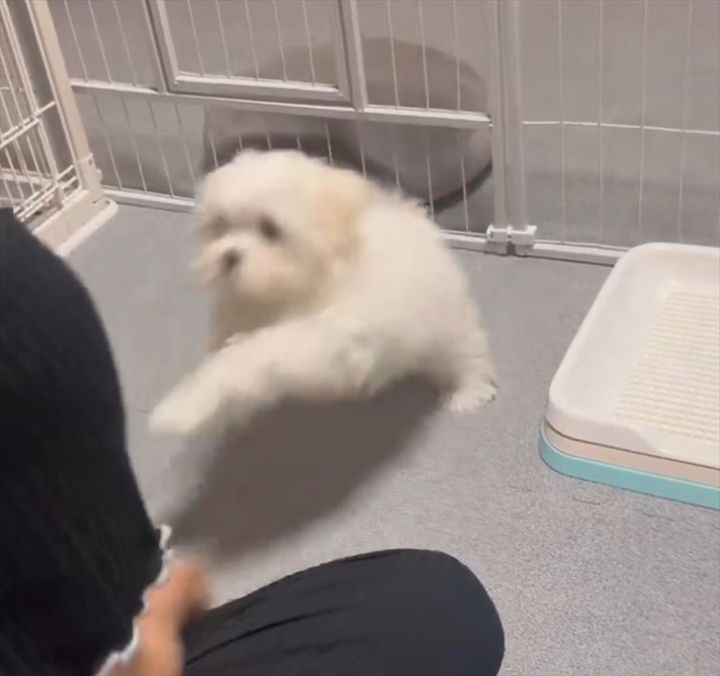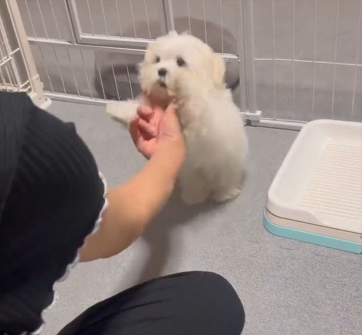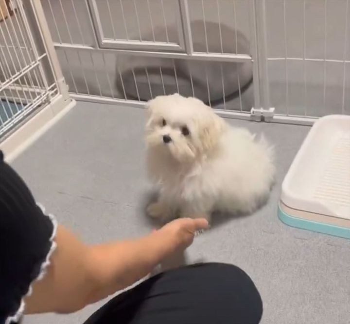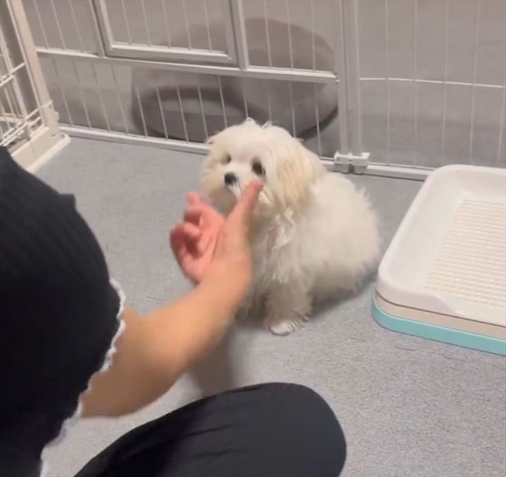 突然、差し出された飼い主さんの手に、マルチーズはどう応えるのでしょうか?