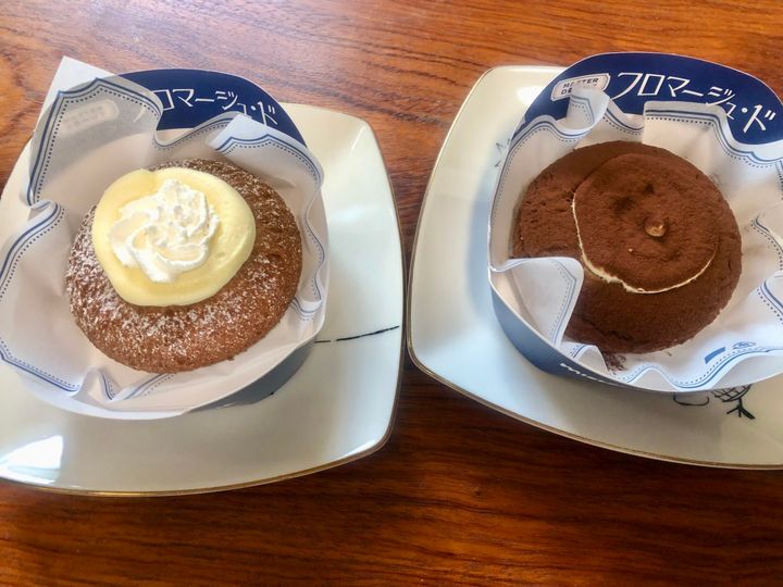 今回購入してもらったのは、フロマージュ・ド ダブルクリームとフロマージュ・ド ティラミスです。他にもあと2種類あるのですが、全てのドーナツ生地にチーズクリームを練り込んだ、さっくりしっとり感の生地が売りみたいです。さて、お味はいかに!