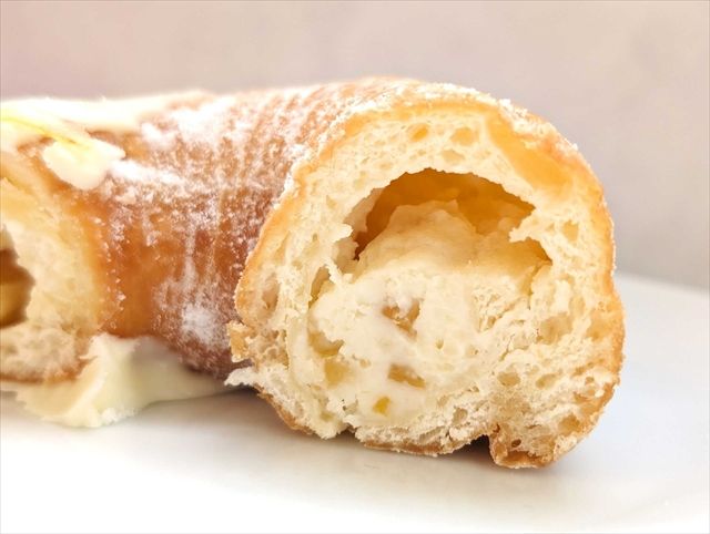 生地がふわもち! 砂糖がまぶされているから甘いのかなと思いましたが、意外と甘すぎずあっさりと食べられます。
