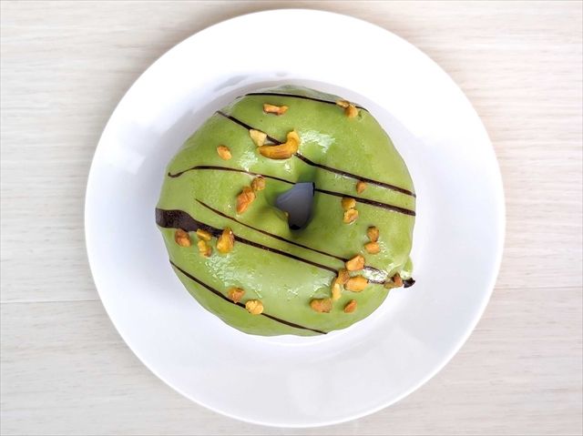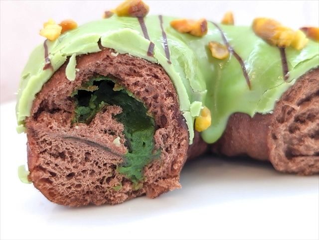 なめらかなピスタチオカスタードに、ローストピスタチオのコリっとした食感。チョコレートの甘みも感じられ、ピスタチオの香ばしさとの相性がよいです。甘すぎず、食感も甘みもバランスのとれたドーナツです。