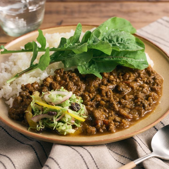 野生の猪肉を使ったカレー。解体から加工まで素早く一貫して行うためジビエ特有の臭みが抑えられ、あっさりとしたなかにも旨みがあり驚くほど食べやすいのが特徴です。ジビエの旨味や食感を引き立てるルーは、スパイスの香りが広がる深みのある味に。やわらかく濃い味のルッコラとも相性抜群!