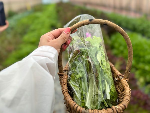 ビニールハウスで葉物(レタス・水菜・ハーブなど)の収穫体験