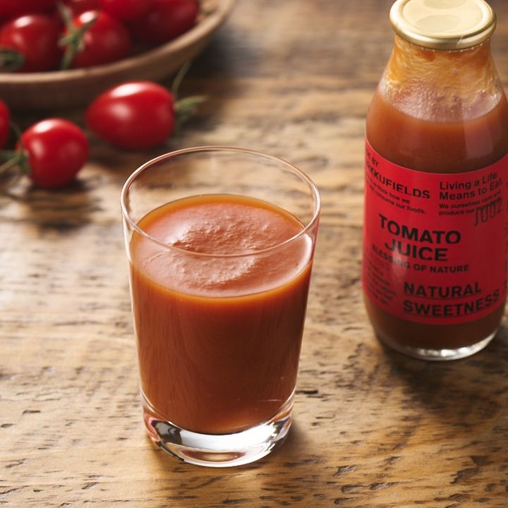原材料は千葉県産のミニトマトだけ。トマト本来の旨みと甘さやフレッシュ感が口いっぱいに広がります。やさしい甘さで飲みやすく、ゆたかな風味が飲む人の心を軽くするようなジュース。