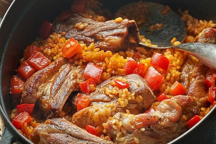 スペイン南東部、ムルシア地方は、パプリカの名産地。このパプリカと豚スペアリブでつくる名物ご飯は格別だ。肉のだしとパエリアの甘味を吸った米が、どうしようもなく旨い。