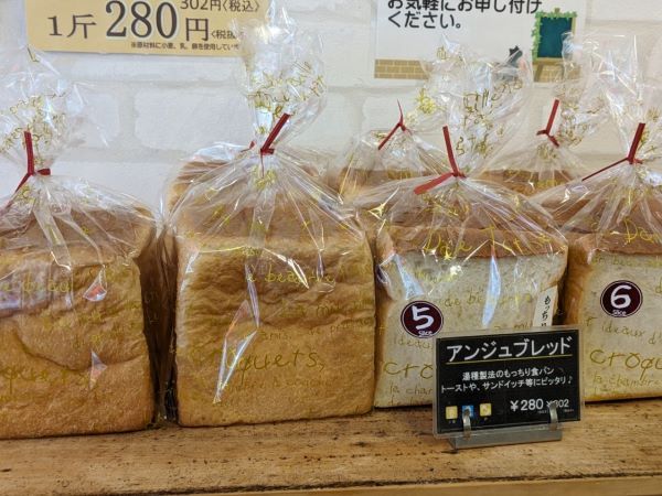 こちらはオーナーさんイチオシの、「アンジュブレッド」です。水分が多めの湯種食パンなので、翌日ももっちり、しっとりが続くそうです。