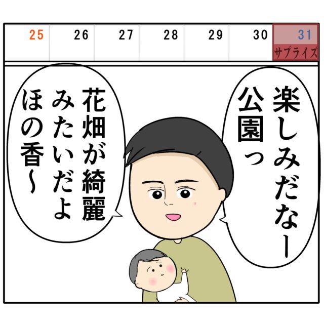 良し男さんは自分の仕掛けるサプライズにウキウキし過ぎて周りが見えていないようですね。体調が悪い中で公園にお出かけするすみれさん、大丈夫でしょうか・・・。