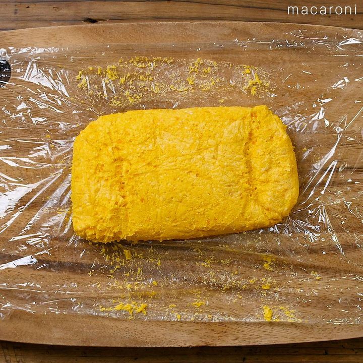 3: ②が冷めたら絹豆腐を加えてよく混ぜ合わせます。ホットケーキミックスを加えて混ぜ、ひとまとまりになったらラップに包んで冷蔵庫で30分寝かせます。