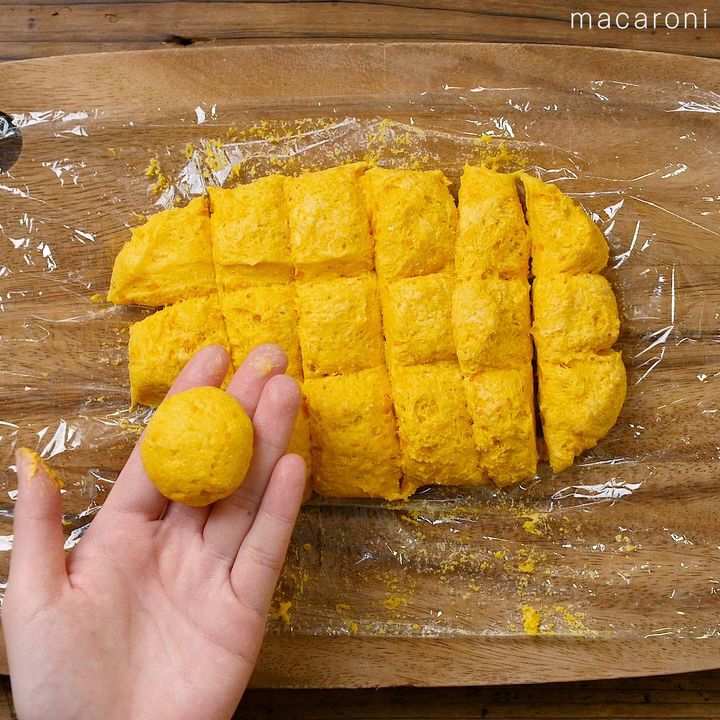 4: ③を濡らした手に取り、直径2〜3cmほどに丸めます。
