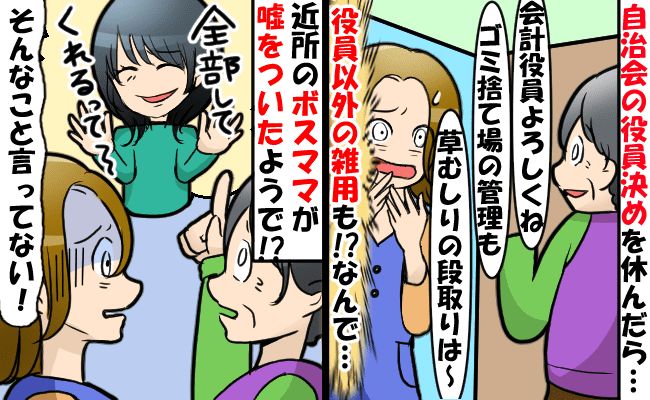 「そんなこと言ってない!」近所のボスママの悪意ある嘘で自治会の仕事を押し付けられ⇒抗議した結果…