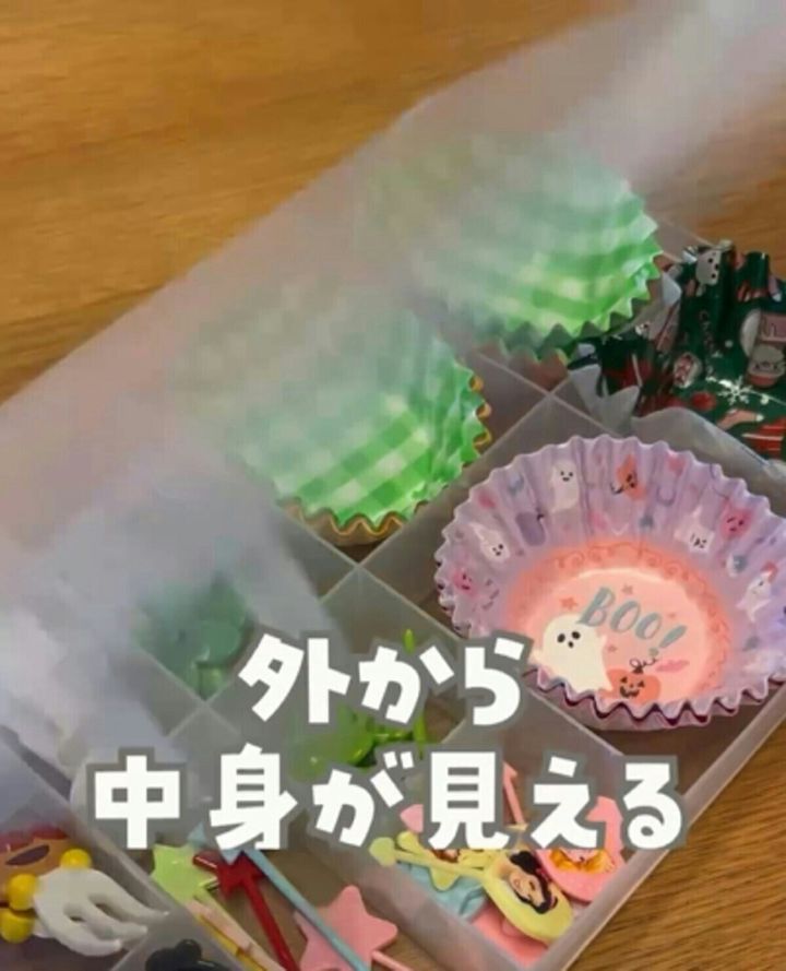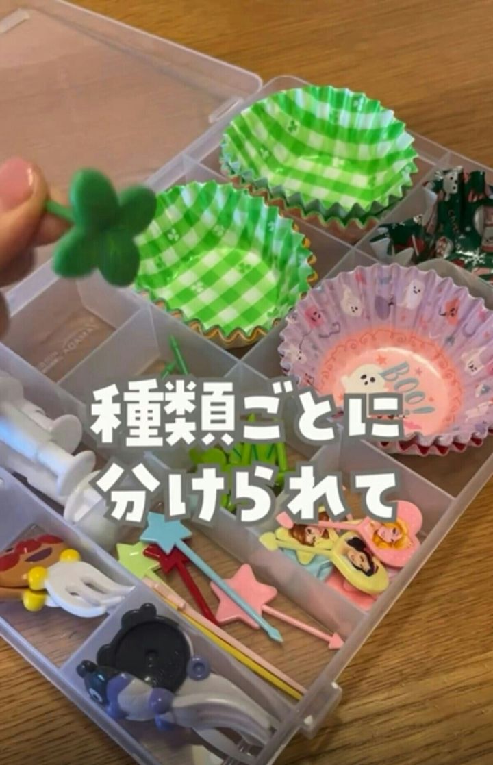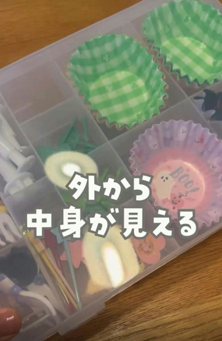 種類ごとに分けて収納できるので、お弁当に使うアイテムの整理にも大活躍します。