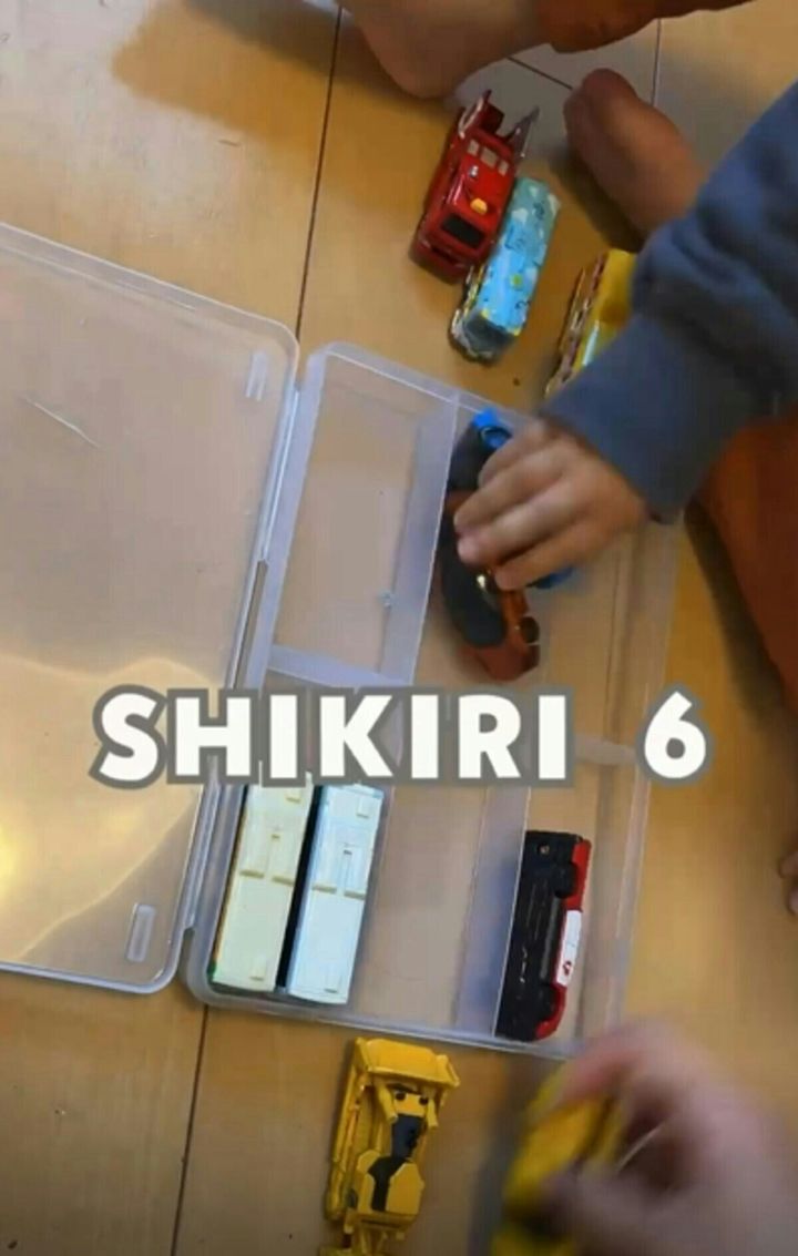 男の子が夢中になるトミカなどのミニカーの収納には、「SHIKIRI 6」が最適です。きれいに収まっていますよね。まとめて片付けると知らないうちにミニカー同士がこすれ合い、傷が付いてしまいがち。しかし、このように収納しておけばきれいな状態を保てそうですよね。