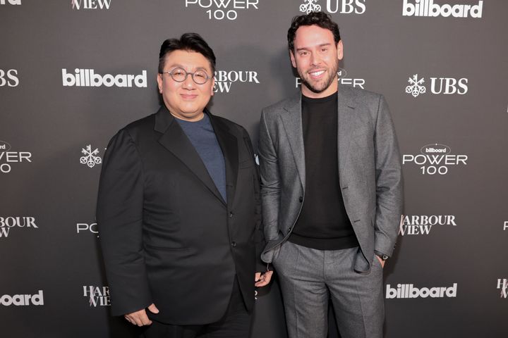 Bang Si-Hyuk and Scooter Braun at the Billboard Power 100 Event held at Goya Studios on February 1, 2023 in Los Angeles, California.