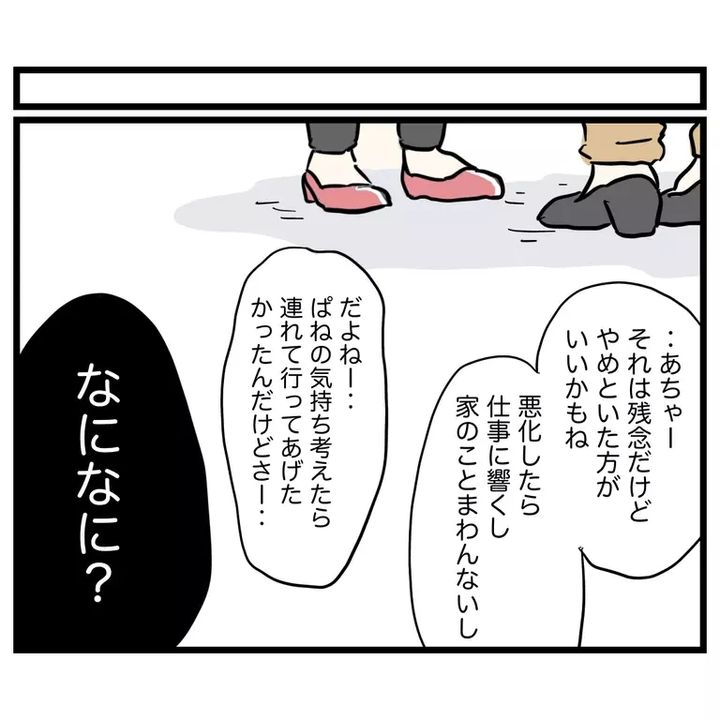 みかちゃんママが子どもを保育園の懇親会に連れて行ってくれると言ってくれたのに、心配で断ってしまった主人公。もし主人公の立場だったら預ける?
