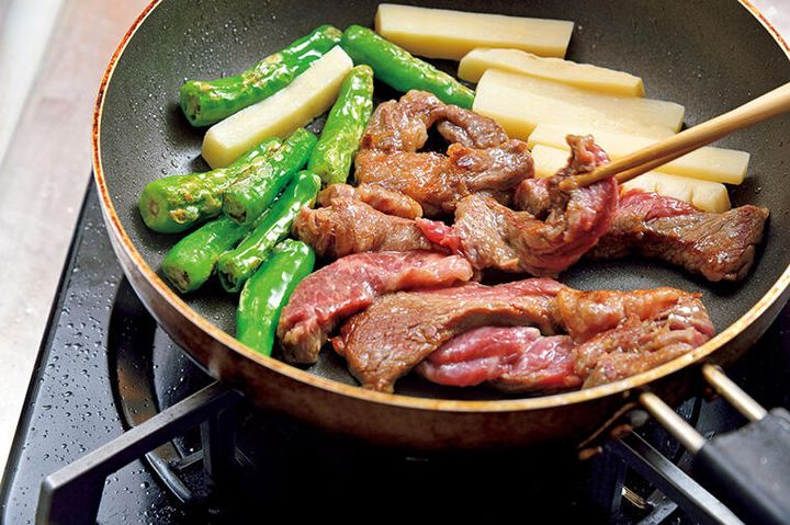 □ししとうの香り高さがたまらない“極太チンジャオロースー”
