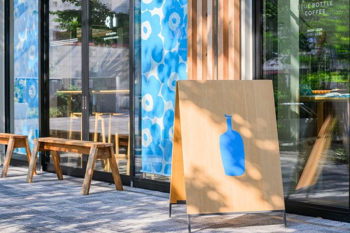6月30日(日)までのコラボレーション期間中は、「ブルーボトルコーヒー 代官山カフェ」「ブルーボトルコーヒー 渋谷カフェ」の外観と店内のデザインを、ブルーボトルコーヒーカラーで表現した「ウニッコ」仕様で大胆にデコレーション。