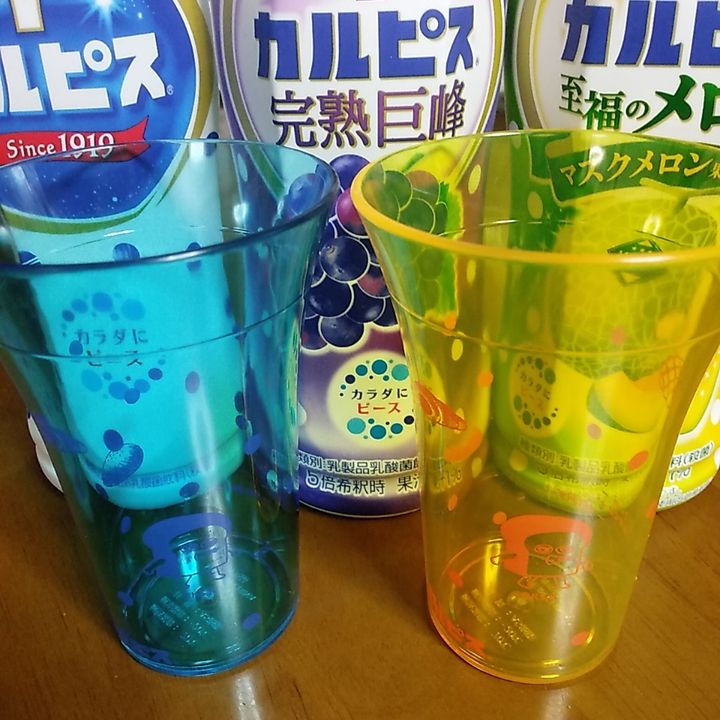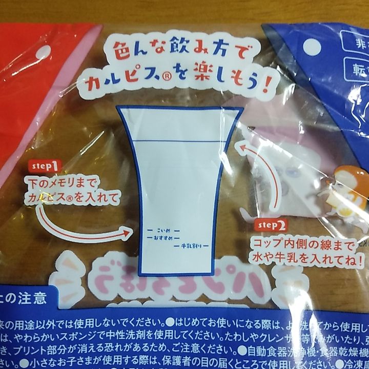 カルピスにメモリ付きコップが被さった状態で販売されていますので、