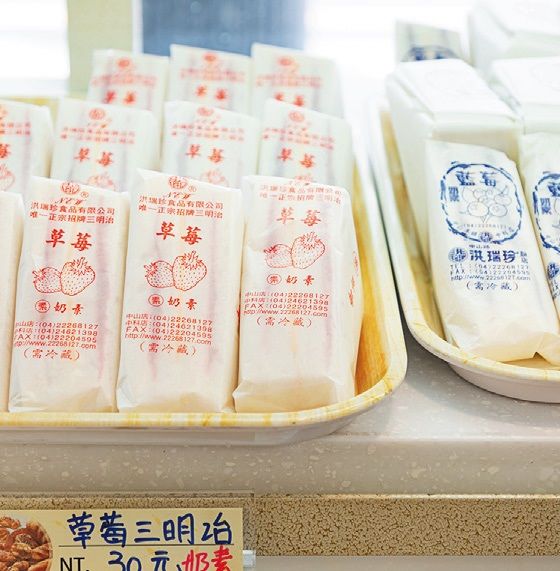 1947年創業、台湾全土に名を馳せるベーカリー。ファンシーな菓子パンに中華菓子。ノスタルジックな味が並ぶ店内の1番人気は、種類豊富な三角サンドイッチ。例えばイチゴサンドは、たっぷりのイチゴジャムに甘めの台湾マヨネーズ、そしてスライスチーズを挟んで。掴むと崩れてしまいそうなふわっふわできめ細かいパン、その間からあふれるジャムとマヨネーズ。その甘酸っぱさとしょっぱさのバランスがたまらない。おなじみの素材で作られているのに唯一無二のおいしさだ。TEL:04・2226・8127 9:00~21:30 無休 カード不可、日本語メニューなし、日本語不可。